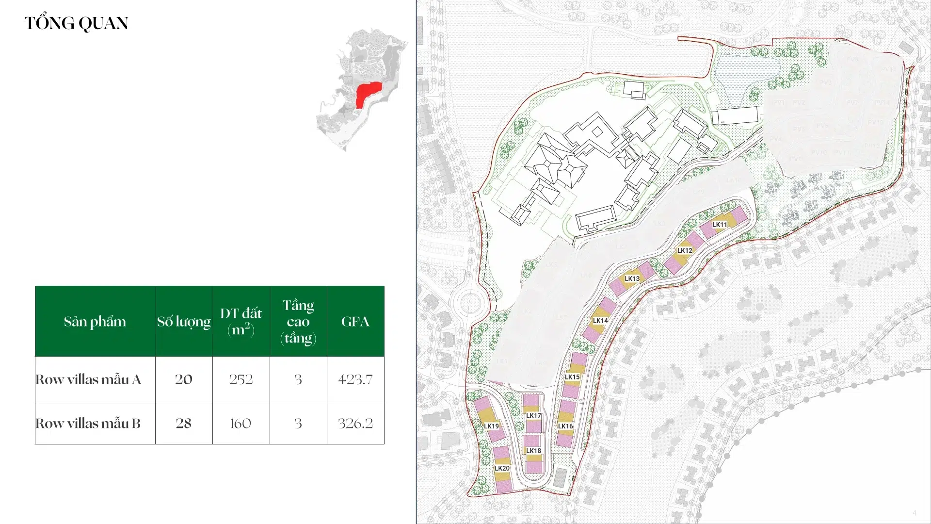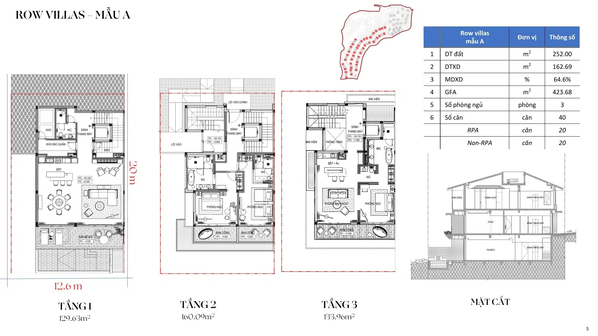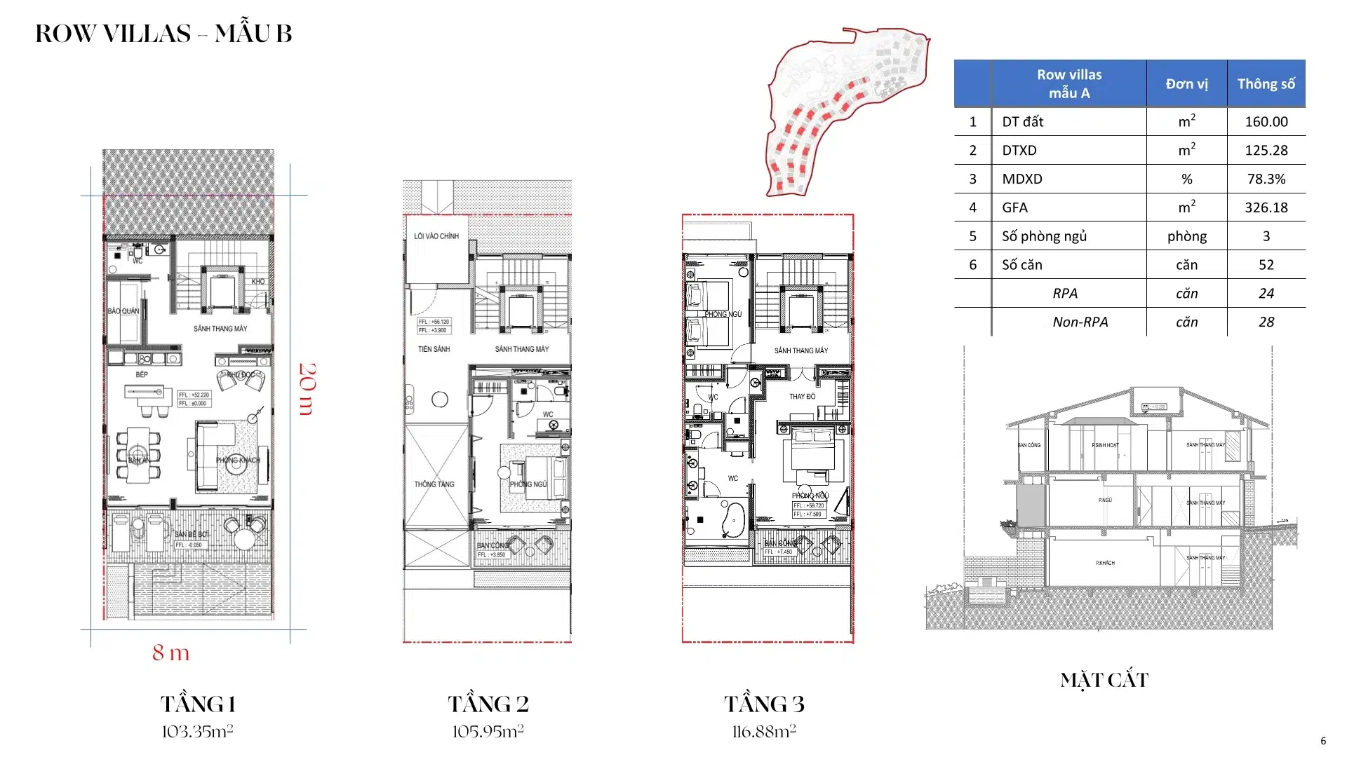 • Row Villas mẫu A: 20 căn